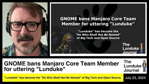 arrow-up11arrow-down1external-linkGNOME bans Manjaro Core Team Member for uttering "Lunduke"www.youtube.comToes♀@ani.social to Linux@sopuli.xyz · 1 year agomessage-square8linkfedilink